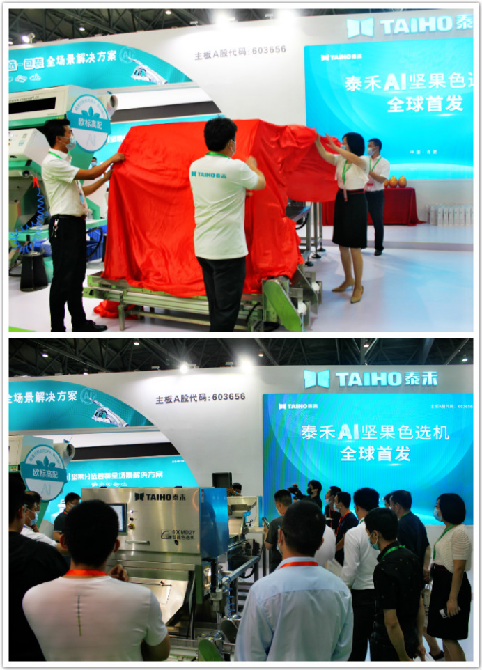 9月18日-20日,第十四届坚果炒货展,泰禾光电重磅发布2020新款AI坚果炒货色选机,带领大家一起感受AI分选的神奇之处。