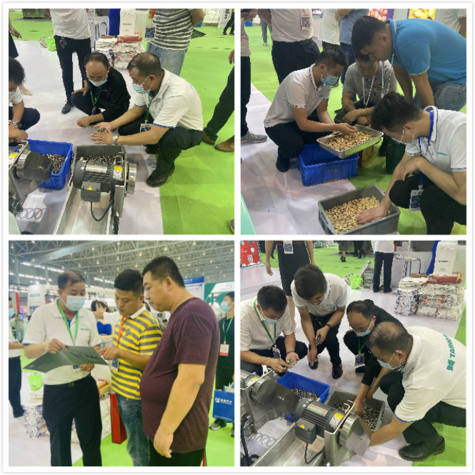 会上,泰禾光电为远道而来的来宾们演示了AI坚果炒货色选机分选流程,获得了客户的一致好评。