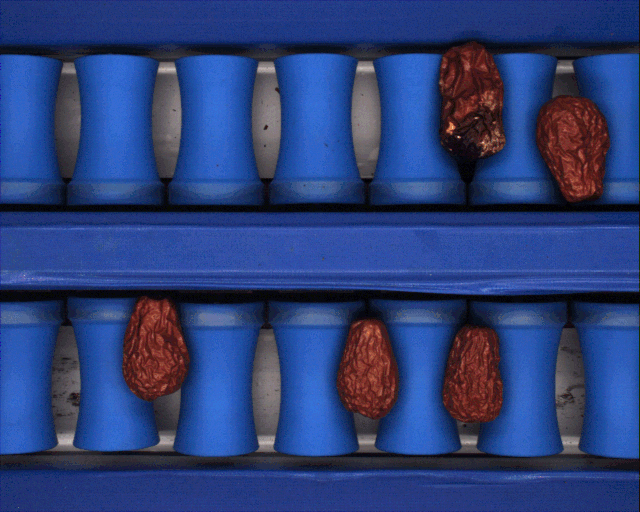 系统运用机器视觉、人工智能、自动控制等技术,对红枣进行全方位检测 、深度分析 、智能决策,自动化检测,有效区分优品、普品、缺陷品。