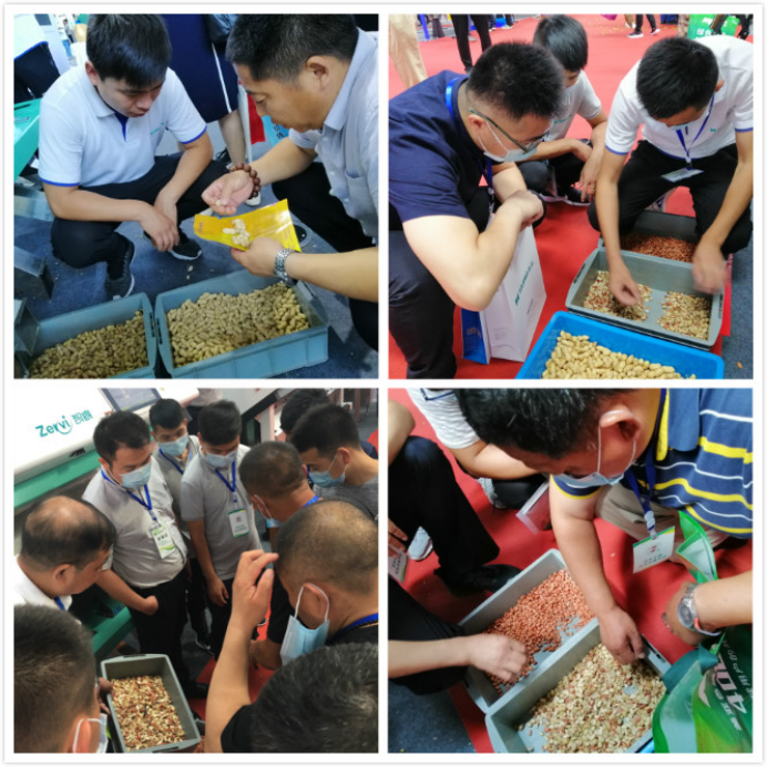 会上泰禾光电,匠心独运的设计、精准的花生分选技术、一体化的包装码垛解决方案,吸引众多客户驻足观看和咨询。