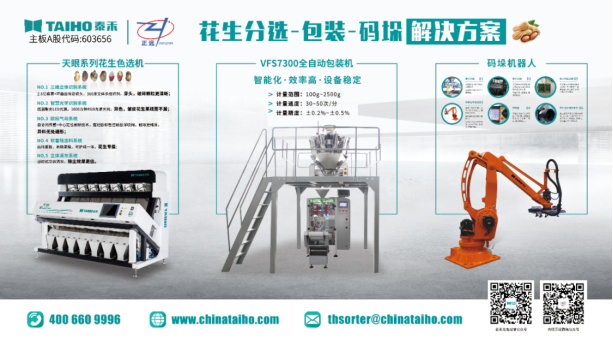会上泰禾光电花生色选-包装-码垛解决方案一经亮相,就吸引了众多关注,热势不可挡。