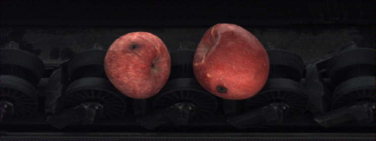 在苹果的分选过程中,泰禾光电AI色选机通过采集苹果相关的数据,让算法寻找数据中本质性的、客观存在、可验证的区别,把它们分成不同的类别,利用深度学习强大的表征能力,进行检测、识别、判断。通过计算机视觉技术、工业级高速计算平台实现将苹果中的霉心病、腐烂果、戳伤果、皱皮果、黄等分选出来并剔除。