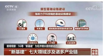 近日,CCTV——央视国际中文频道“官宣”了“新基建”涉及的7大领域,给出了“发力于科技段的基础设施建设、为经济增长提供新动力”的定义。