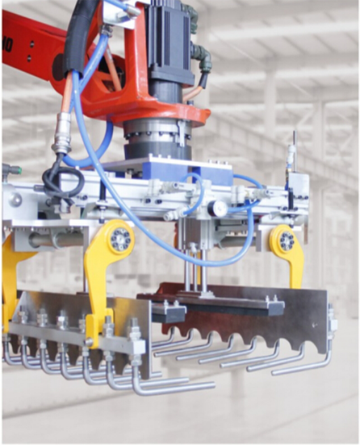 泰禾光电码垛机器人的工作系统包括机器人本体、机器人抓手、托盘输送、定位设备以及配合软件和电气系统等,实现复杂场景下的各种码垛作业。