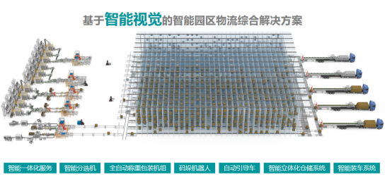 泰禾光电工厂智能物流涵盖智能分选、自动包装、自动码垛、AGV智能运输、智能仓储、自动装车等多种智能装备产品,并结合行业最先进的AI+IOT技术赋能企业,实现从生产、包装、码垛、运输、仓储、物流等多维度自动化管理,完成供货-生产-交付,智能园区生产“一键式”操作,实现智能检测分选装备后端的工厂智慧物流的自动化、信息化、智能化。